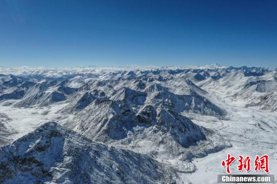 11月7日,西藏自治区拉萨市曲水县达嘎镇色普沟风光旖旎。立冬时节,色普沟银装素裹,分外妖娆。雪山、河流、公路构成了一幅壮美的画卷。