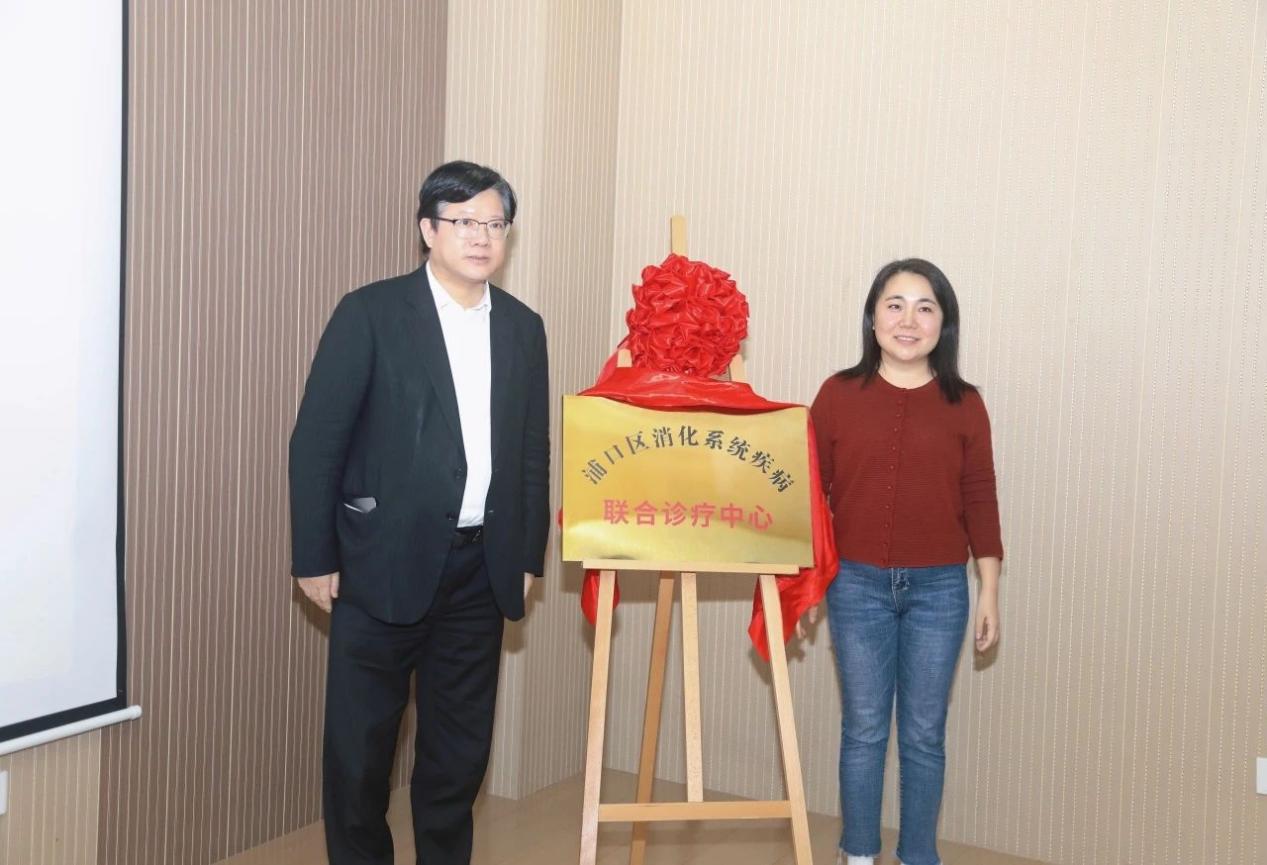 南京市浦口区卫健委党委副书记、副主任王隽隽与东南大学附属中大医院首席专家、内镜中心主任施瑞华教授共同揭牌。