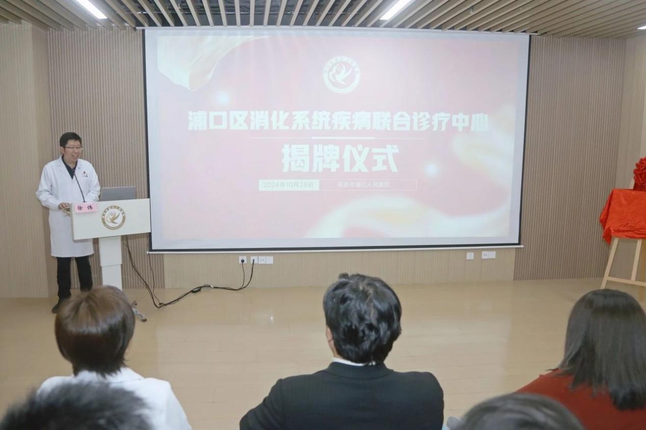 为满足消化道疾病患者“一站式”就诊需求,10月28日,浦口区消化系统疾病联合诊疗中心揭牌仪式在浦口人民医院举行。东南大学附属中大医院首席专家施瑞华,南京中医药大学教授王小宁,南京市浦口区卫健委党委副书记、副主任王隽隽,浦口人民医院党委书记张文静,党委副书记、院长蔡强携双方相关处室主任出席此次活动。揭牌仪式由浦口人民医院副院长徐伟主持。