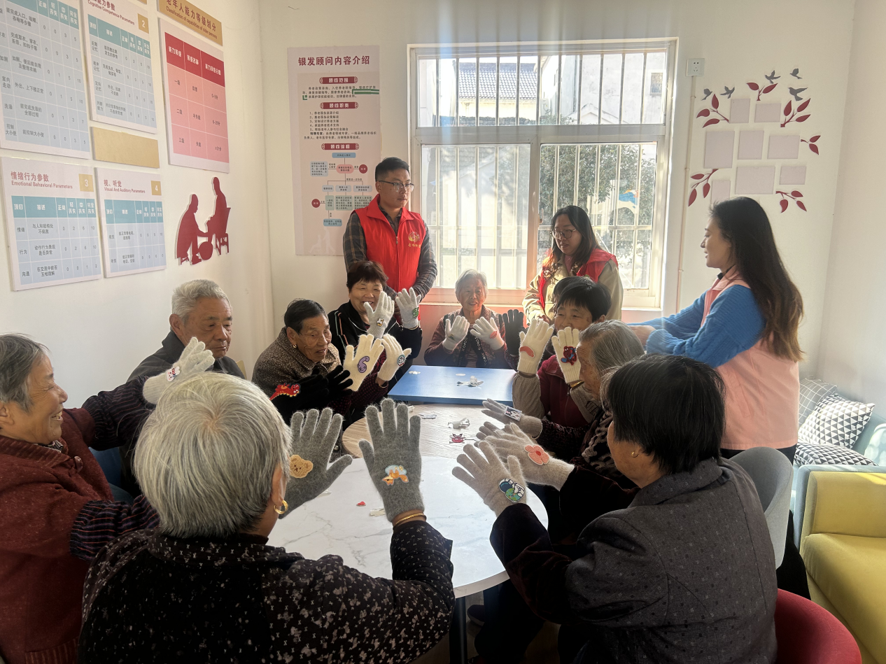 11月8日上午,双红村新时代文明实践站、妇联、计生协联合双红村互助时间平台服务点在双红村睦邻点开展“守护掌心温度·定制冬日幸福”手套DIY活动。活动现场,桌上已经摆放好了色彩各异的装饰品、小贴布以及手套DIY工具。在志愿者的细心帮助下,老人们纷纷发挥自己丰富的想象力,一起探讨如何用心装饰属于自己独一无二的“温暖牌”手套。“虽然超市也有手套卖,也花不了多少钱。但是没有亲手制作手套所具有的特殊意义。我要将这份暖融融的心意带回家,让这个冬天更加温暖。”孔阿姨说道。