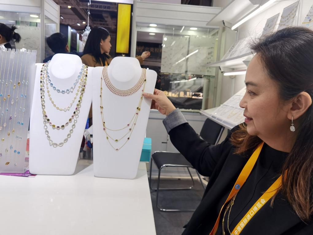 得益于共建“一带一路”倡议和中国-东盟自由贸易协定的深化落实,阿拉尼娅一家的珠宝企业有了进军中国广袤市场的新计划。这次她和家人带来的珠宝饰品多达上百种款式,有镶嵌红宝石、祖母绿、碧玺等的项链、手链、戒指、吊坠等,吸引采购方驻足。
