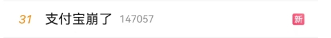11月11日上午,“支付宝崩了”话题登上微博热搜。