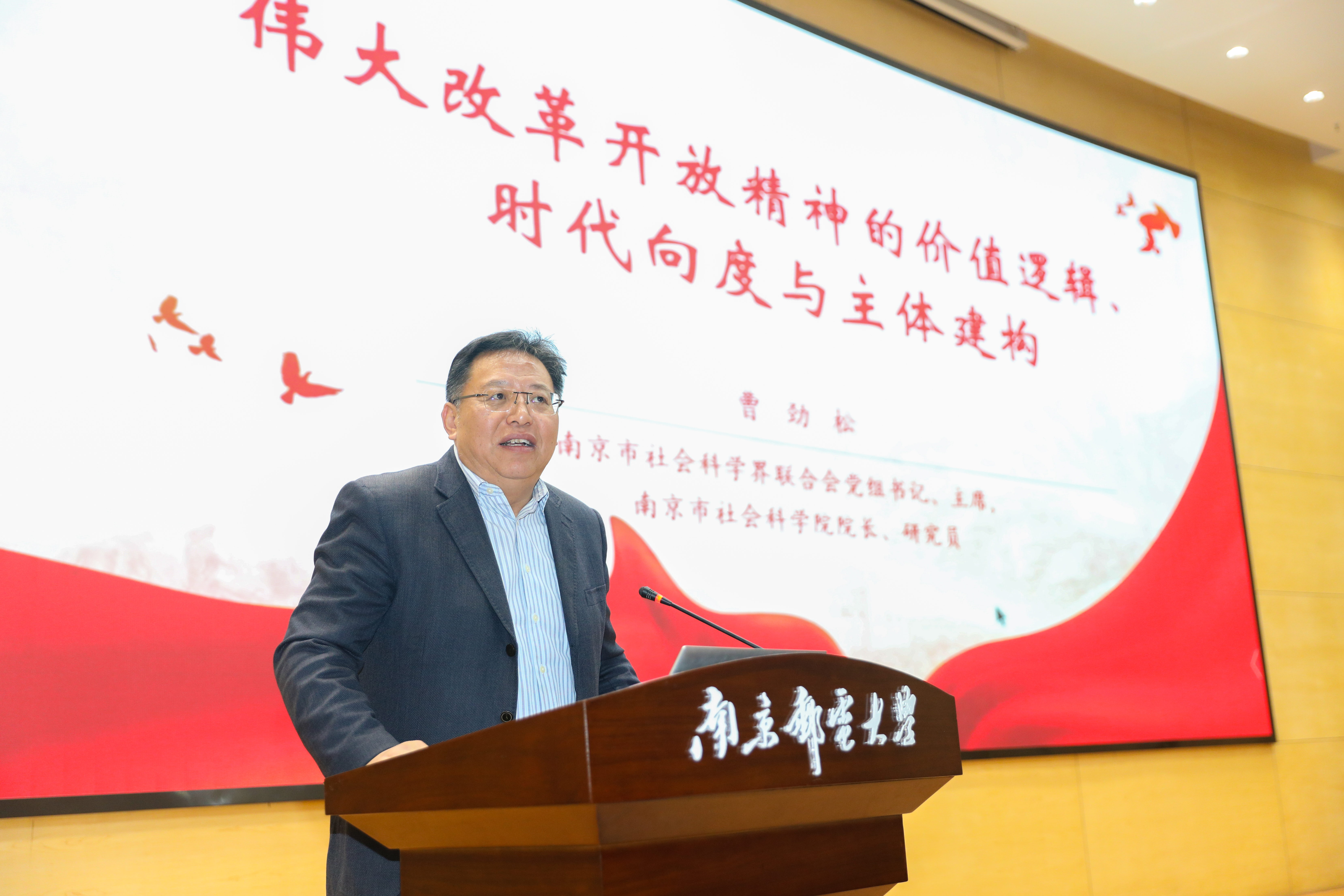 曹劲松院长的主旨报告题目为“伟大改革开放精神的价值逻辑、时代向度与主体建构”。他指出,伟大改革开放精神是当代中国人民最鲜明的精神标识,在中国式现代化宏大叙事境遇中确立了价值逻辑:以改革为动力推进国家治理、以开放为格局促进改革发展、以进取为目标完善制度机制、以创新为引领创造中国奇迹、以担当为己任增进人民福祉。与之相应的,它彰显着时代向度:伟大改革开放精神为中国特色社会主义事业的蓬勃发展铸就主体自信、伟大改革开放精神为新时代进一步推进全面深化改革注入强劲动力、伟大改革开放精神为以中国式现代化创造人类文明新形态贡献发展智慧。面向中国式现代化,弘扬和激发伟大改革开放精神,其主体建构要从三个方面出发:第一,科学把握主体精神的建构逻辑;第二,用好用活主体精神的建构方法;第三,不断拓展主体精神的建构路径。