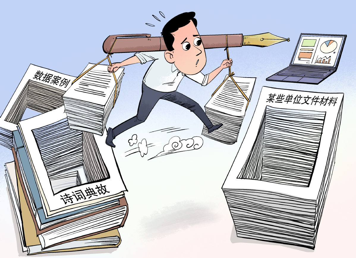 大到一个部门,小到一个单位,无论是对上呈送,还是对下下发,都离不开材料,文字材料的重要性不言而喻,但文字材料关键在于内容而不在于形式,重在简洁明白,干净利落,重在观点鲜明、重点突出。那种看起来文采奕奕,内容却平平无奇、空话套话连篇的材料,是典型的形式主义。要切实把严控文件数量、提升文件质量作为整治形式主义为基层减负的重要内容,从源头帮“材子”“材女”甩掉不必要的“材料包袱”。