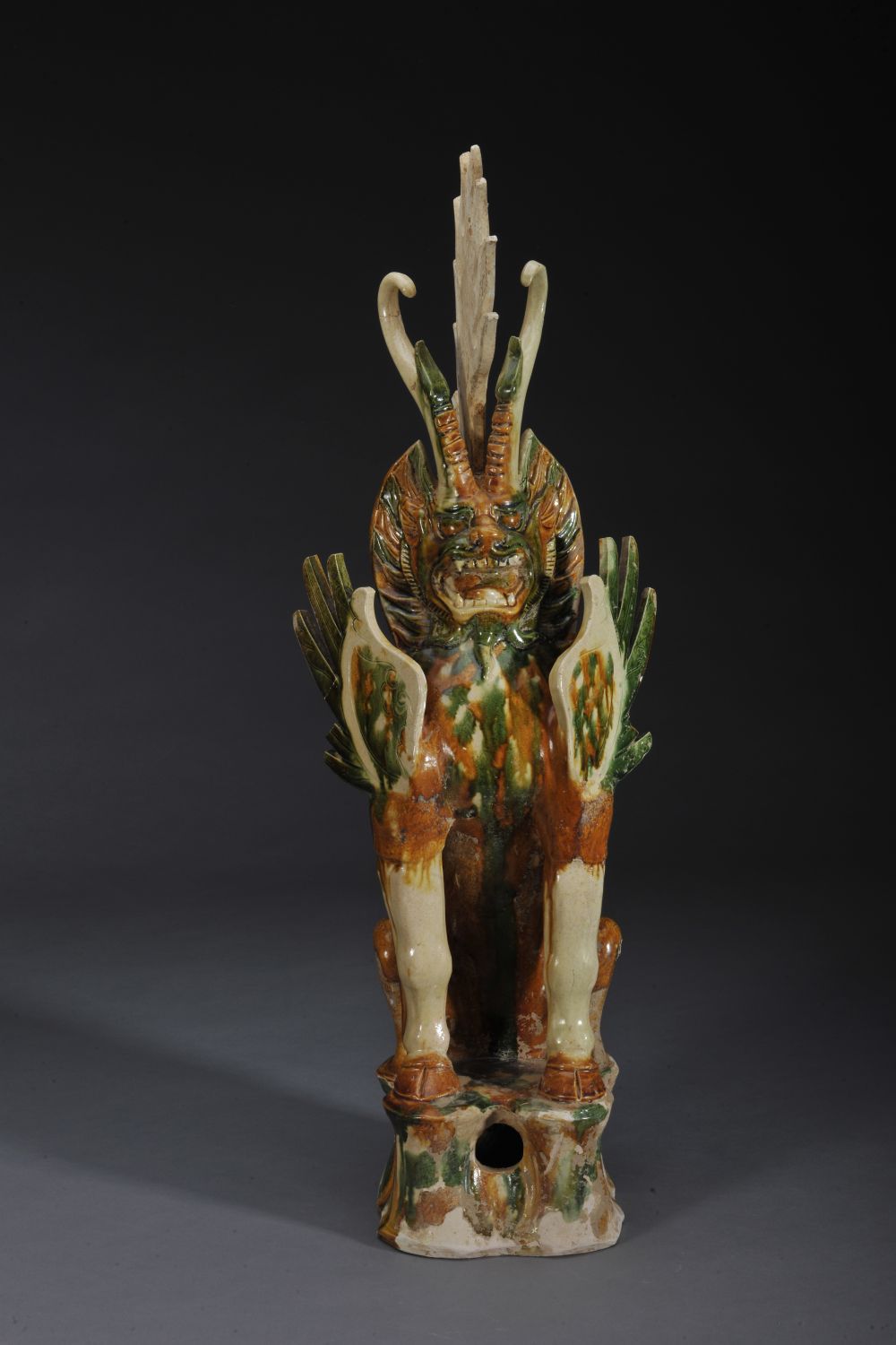 2019年出土于河南省洛阳市洛龙区潘寨村的唐代三彩镇墓兽。(洛阳市考古研究院供图)