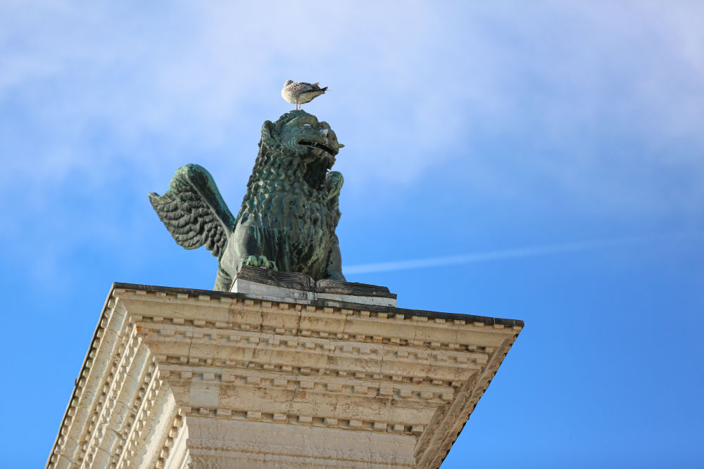 新华社意大利威尼斯11月11日电 身长4米、重约3000公斤,一尊可追溯至十三世纪的青铜狮立在意大利威尼斯圣马可广场石柱上,成为这座水城的象征,被称作“威尼斯之狮”。