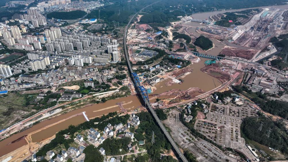 这是广西平陆运河青年枢纽与市区衔接处的建设工地(2024年10月11日摄,无人机照片)。新华社记者 张爱林 摄