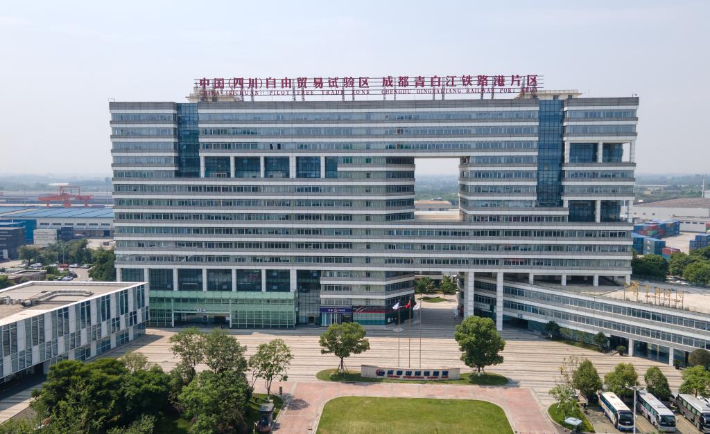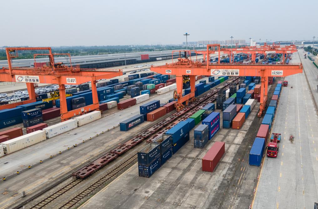 中国(四川)自由贸易试验区成都青白江铁路港片区(2024年6月13日摄,无人机照片)。新华社记者 唐文豪 摄