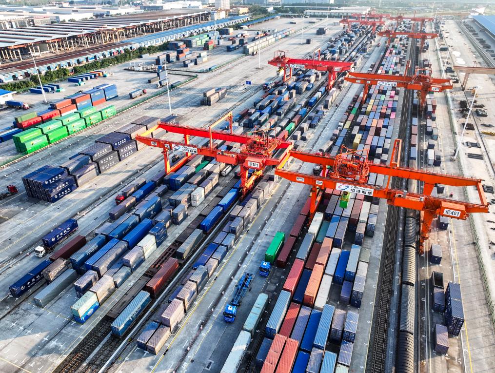 这是陆海新通道重庆无水港(2024年10月28日摄,无人机照片)。新华社记者 王全超 摄
