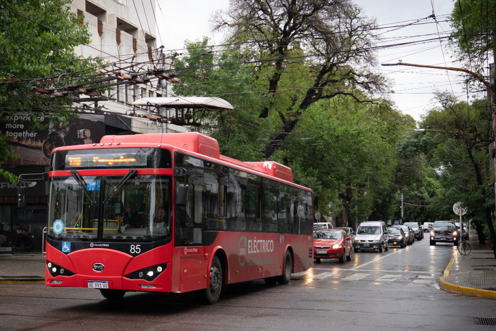 拜访完酒庄,记者来到门多萨市区。这里,一些红色公交车穿梭于林荫道,车身上“百分之百电动”的标语非常醒目。这是门多萨于2019年从比亚迪和中通客车购入的电动巴士。由此当地第一支电动公交车队正式投入运营。