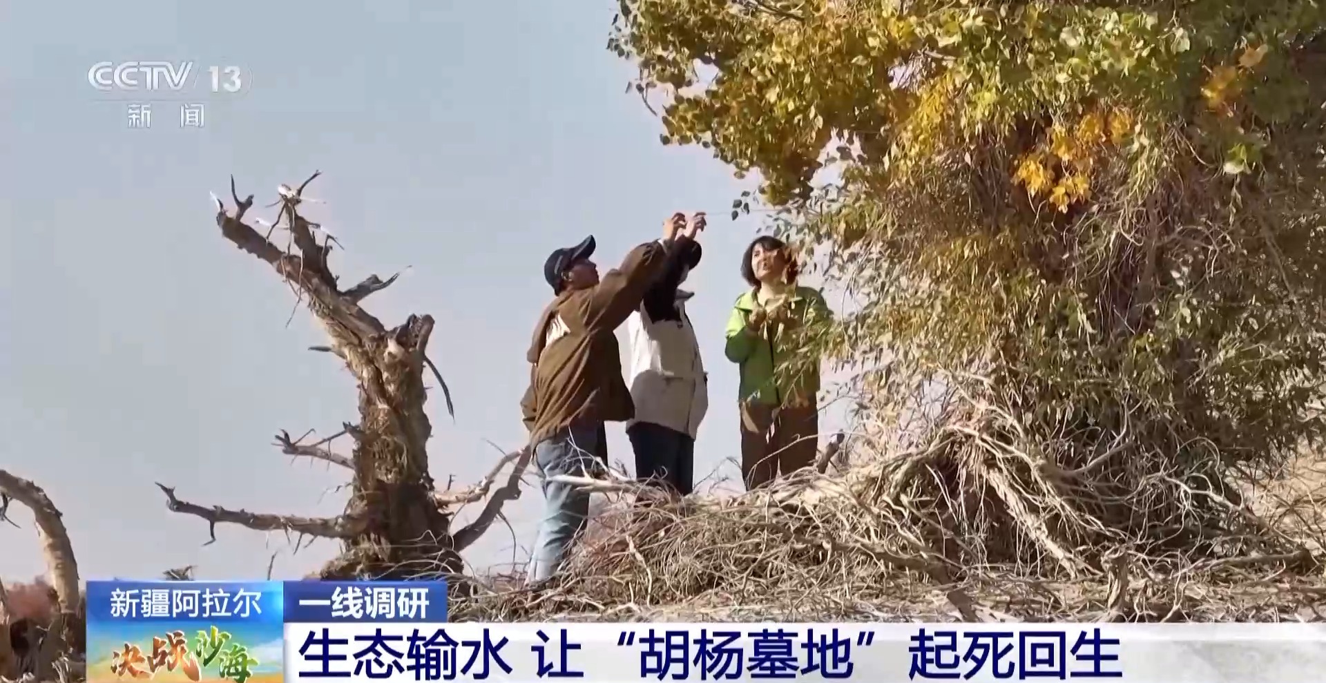 塔里木大学教授 李志军:通过生态输水以后,有很多胡杨看似死了,实际上却恢复了生命力。