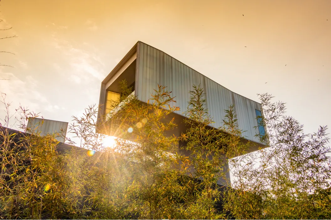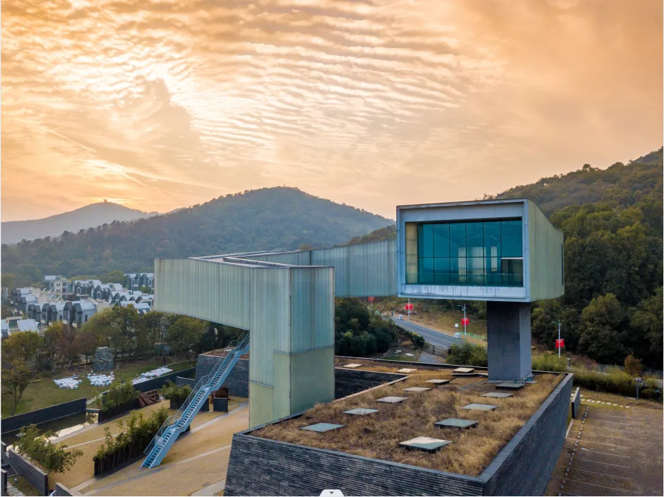 这里的建筑宛如散落在山林间的艺术珍宝,风格各异,有的似灵动的音符,在绿树丛中跳跃;有的像沉默的智者,静静矗立诉说着独特的设计理念。