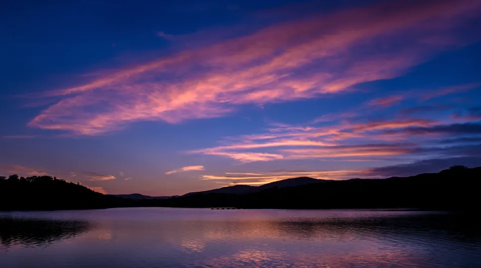 日落时分,晚风吹拂,湖上红霞满天,湖边只剩下一片寂静与祥和。