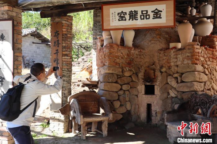 11月8日,浙江龙泉溪头村,游客打卡古龙窑。 傅飞扬 摄