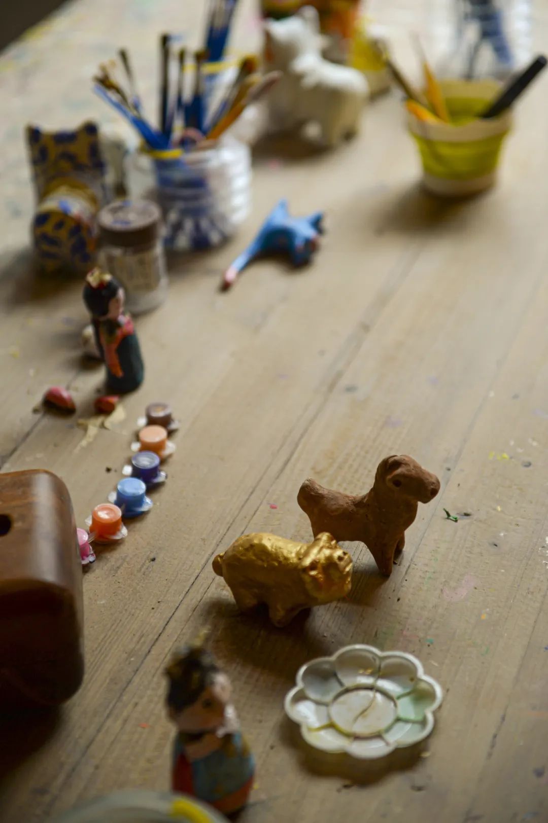 店中集合了全国各地三十多个非遗拟彩塑代表性项目。你可以在这里欣赏艺术品的同时,体验泥彩塑技艺。捏泥、风干、上色,在指尖翻转中感受自己内心的平静。