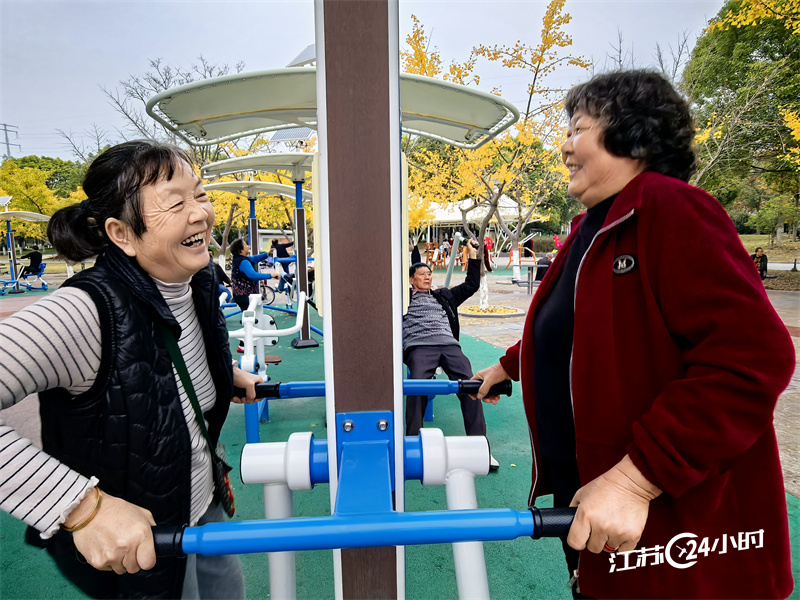(特约摄影 桂宝林 7:08摄 9:10上线)11月16日,淮安市,市民在古淮河湿地生态公园智能健身站使用智能健身器材锻炼身体。这些智能健身器材上有电子屏幕,可实时显示运动时间、心率、消耗热量等信息,让市民可以了解自己的锻炼效果,引导市民科学、合理地进行锻炼。