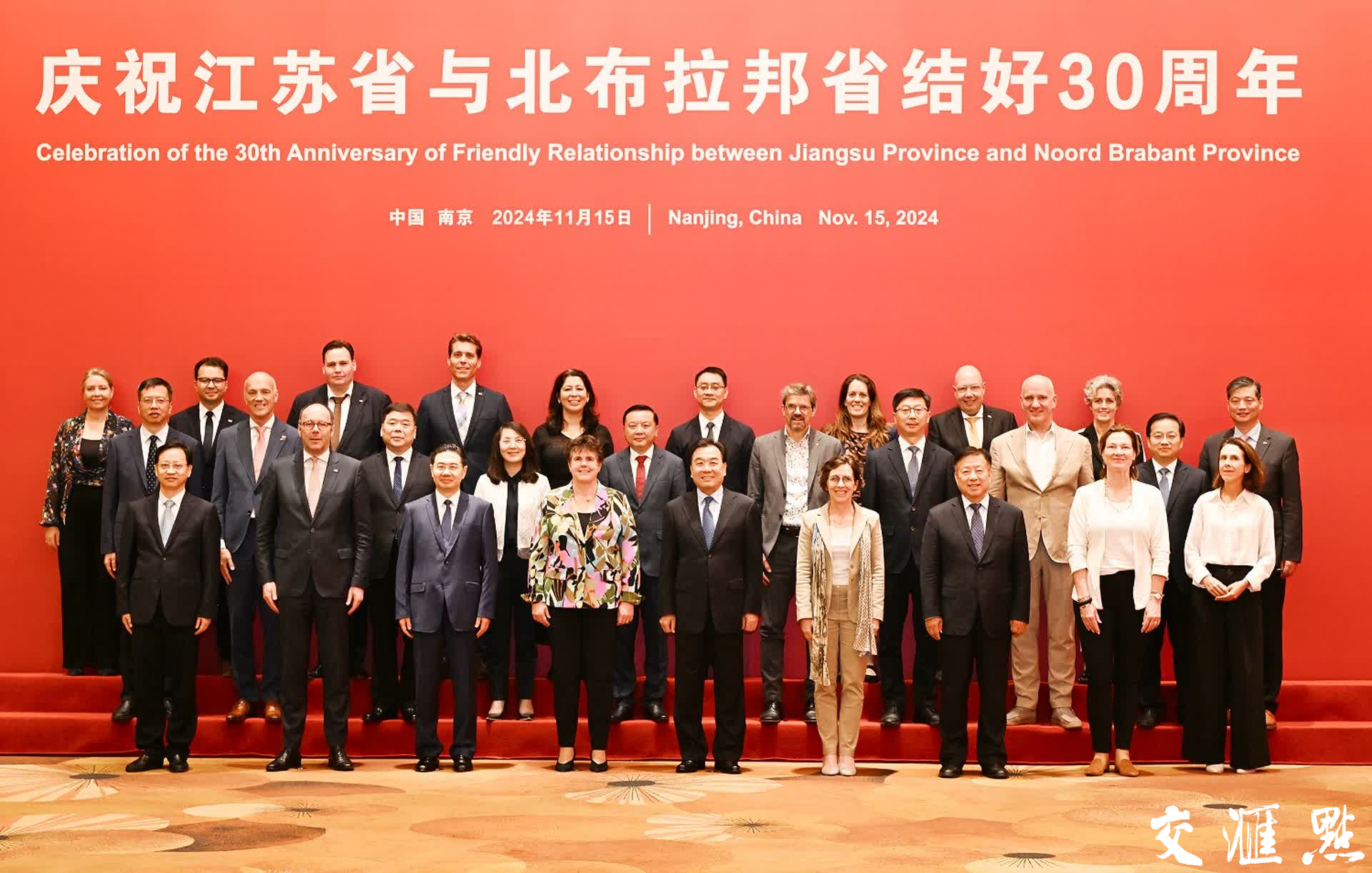 今年是中荷建立开放务实的全面合作伙伴关系10周年,是江苏与荷兰北布拉邦省结好30周年。11月15日,省委书记信长星在南京会见北布拉邦省省长阿德马一行,共同庆祝结好30周年并见证两省签署《关于进一步增进友好关系的谅解备忘录》。(交汇点新闻)