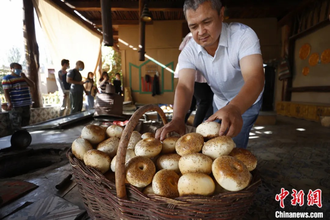 2021年9月25日,新疆维吾尔自治区克孜勒苏柯尔克孜自治州阿图什市阿孜汗村馕合作社。近年来,新疆大力发展馕产业,并逐渐成为富民增收的“名片产业”。中新社记者 富田 摄