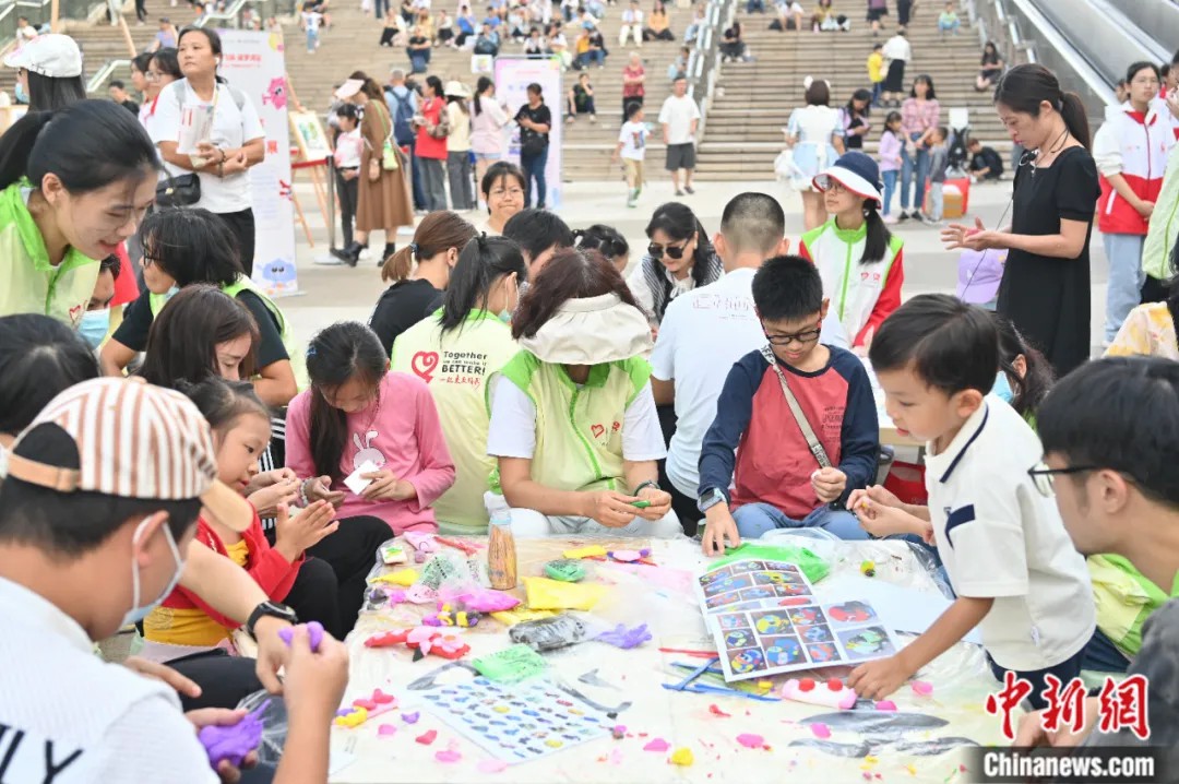 10月26日, 2024“瑕之美”特殊孩子艺术节·广州文艺汇演活动在花城广场举行。图为活动现场的集市摊位吸引民众参观。中新社记者 陈楚红 摄