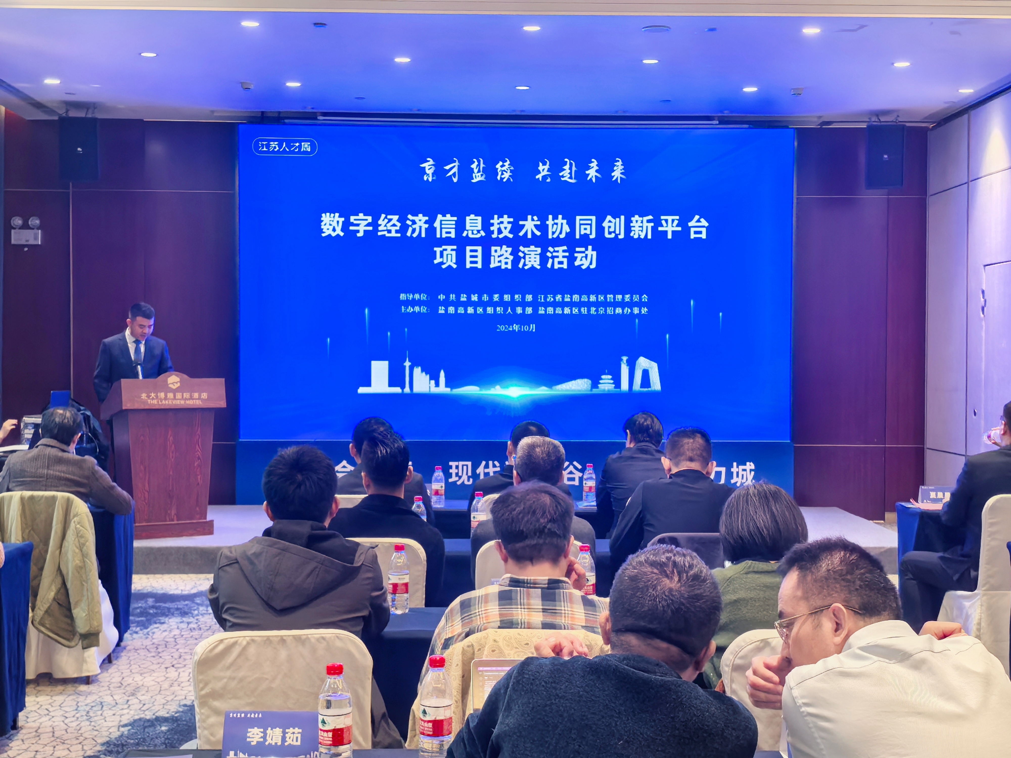 10月25日下午,盐南高新区组织人事部与区驻北京招商办事处在北大博雅国际酒店共同举办数字经济信息技术协同创新平台项目路演活动,现场邀请40多位高校院所、金融机构、企业负责人等高层次人才参加。
