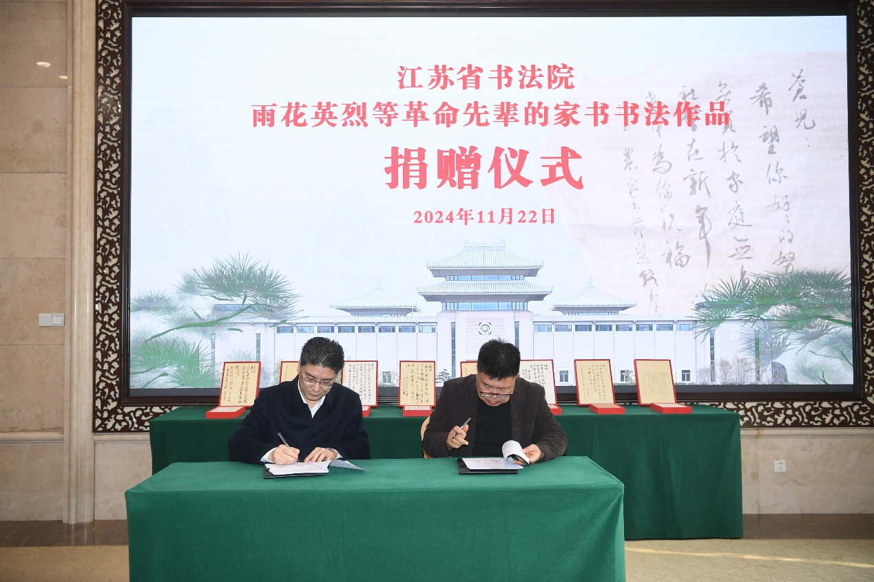 活动现场,雨花台烈士纪念馆向江苏省书法院颁发了捐赠证书,双方签订了捐赠协议。雨花台烈士纪念馆相关负责人表示,这些融诗情、史识、哲思于一体的作品,是革命先烈们的心灵史,更是人们在历史的长河中引路的启明灯,希望通过这些书法作品,能让更多的人感受到烈士精神的能量。据了解,接下来,这些作品还将通过各种形式进行展示利用,真正让这些革命题材的书法藏品“活”起来、“用”起来、“红”起来。