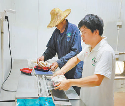 在示范中心,一条年产300吨的菌草菇生产线引起记者的注意:自动搅拌机、装袋机、锅炉和真空高压灭菌锅、无菌接种线、环境自动控制的培养和出菇系统……各类菌草技术设备应有尽有。走进车间里,机器轰鸣,几名斐济本地工人正把一丛丛菌草送入机器里粉碎,随后,搅拌、装袋……