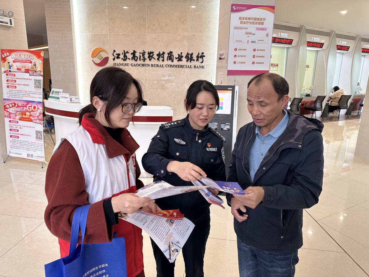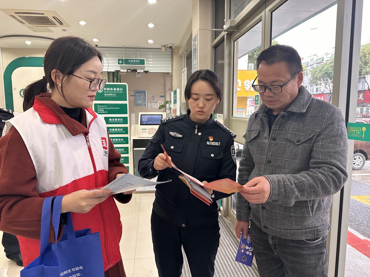 为进一步增强辖区群众防范电信网络诈骗安全意识,有效打击电信诈骗犯罪活动,营造安全和谐的社区环境。11月25日下午,高淳区固城街道平安法治办联合南京市公安局高淳分局固城派出所走进中国农行固城支行、高淳农商行固城支行开展全民反诈宣传活动,将反电诈“干货”送到群众身边,增强居民反诈意识,筑牢反诈防诈安全墙,守护好群众的“钱袋子”。