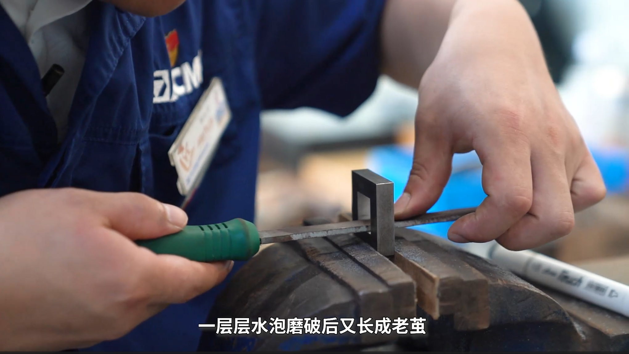 学本事没有捷径,一层层水泡磨破后又长成老茧,双手的蜕变见证着钳工的成长。