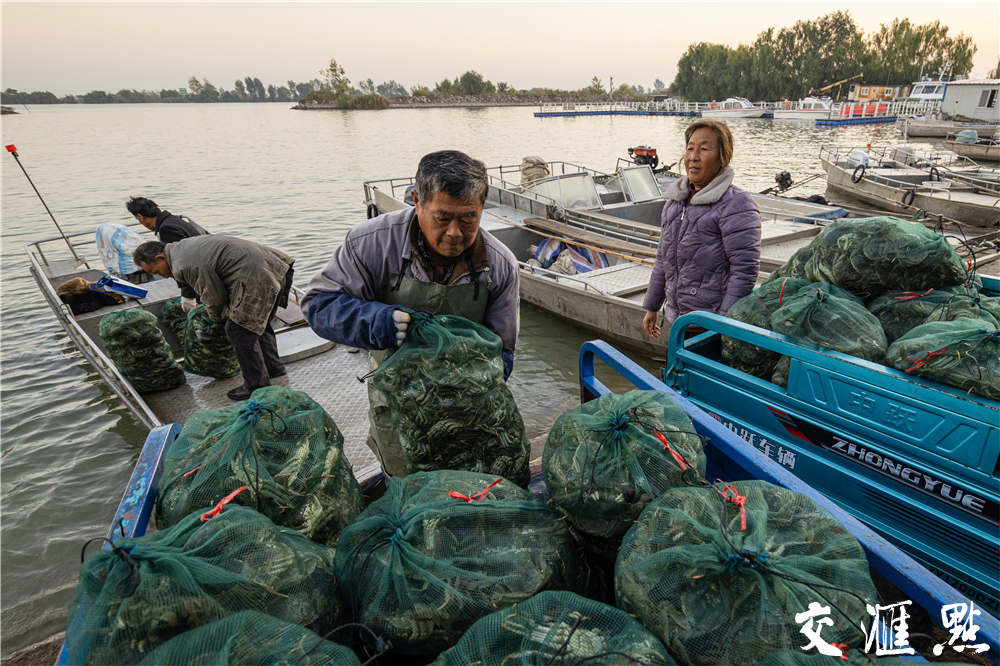 11月6日清晨六点多,新滩村的渔民将养殖的螃蟹运送至老子山镇青牛码头准备交易。