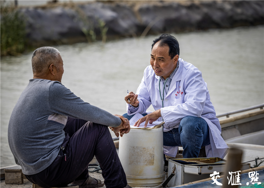 水上医生王开元将诊室设在自家的渔船上,这一天他按例为渔民做慢性病随访。撑船行医26载,这位全国“优秀乡村医生”被渔民亲切地称为“水上120”。