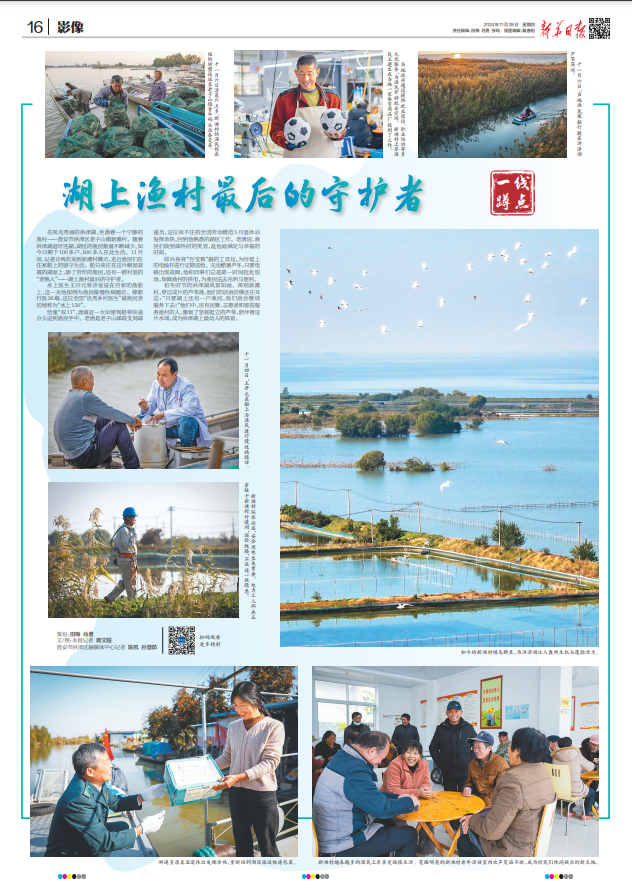 在风光秀丽的洪泽湖中,坐落着一个宁静的渔村——淮安市洪泽区老子山镇新滩村。随着洪泽湖退圩还湖,湖区的渔民数量不断减少,如今只剩下100多户、500多人在此生活。11月间,记者分两次来到新滩村蹲点,走近渔民们在住家船上的留守生活。船只来往在这片略显寂寞的湖面上,除了劳作的渔民,还有一群村里的“老熟人”——湖上渔村最后的守护者。