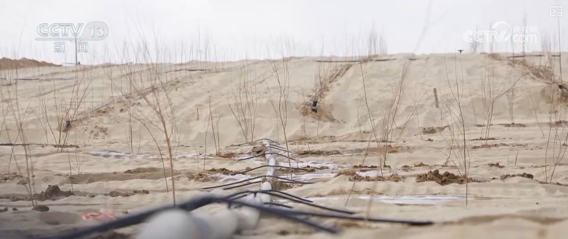 沙海间,新栽的红柳树苗向着沙丘深处延伸。2025年春天,这里将套种板蓝根、甘草等中药材。