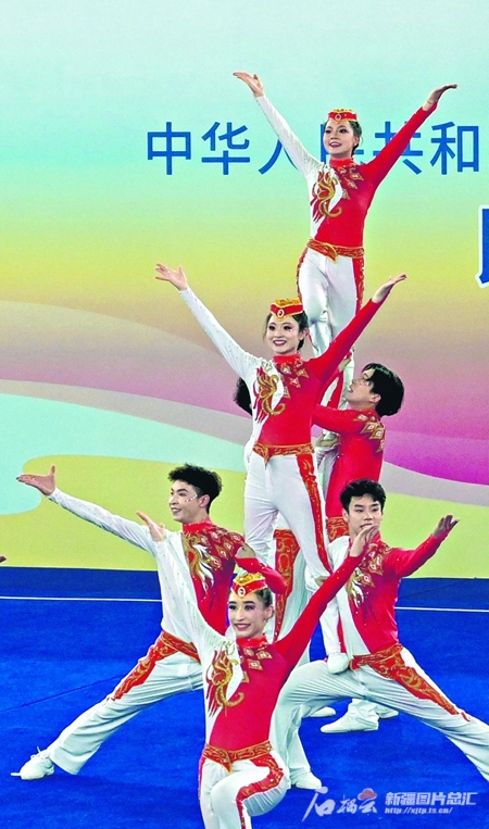 11月25日,新疆代表团民族健身操队队员正在比赛。