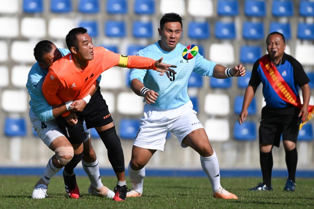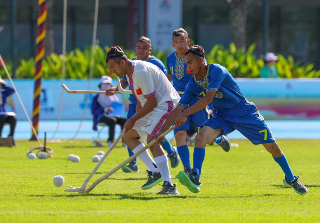 山海难挡情意浓。在24日的表演项目里,10多名来自新疆和田地区于田县各行各业的队员带来了麦热球表演。山高路远,他们历时三天才抵达三亚。“我们想向全国人民展示麦热球这项运动,在场外和大家多交流,让各族人民了解南疆的发展变化。”队长吾买尔江说。