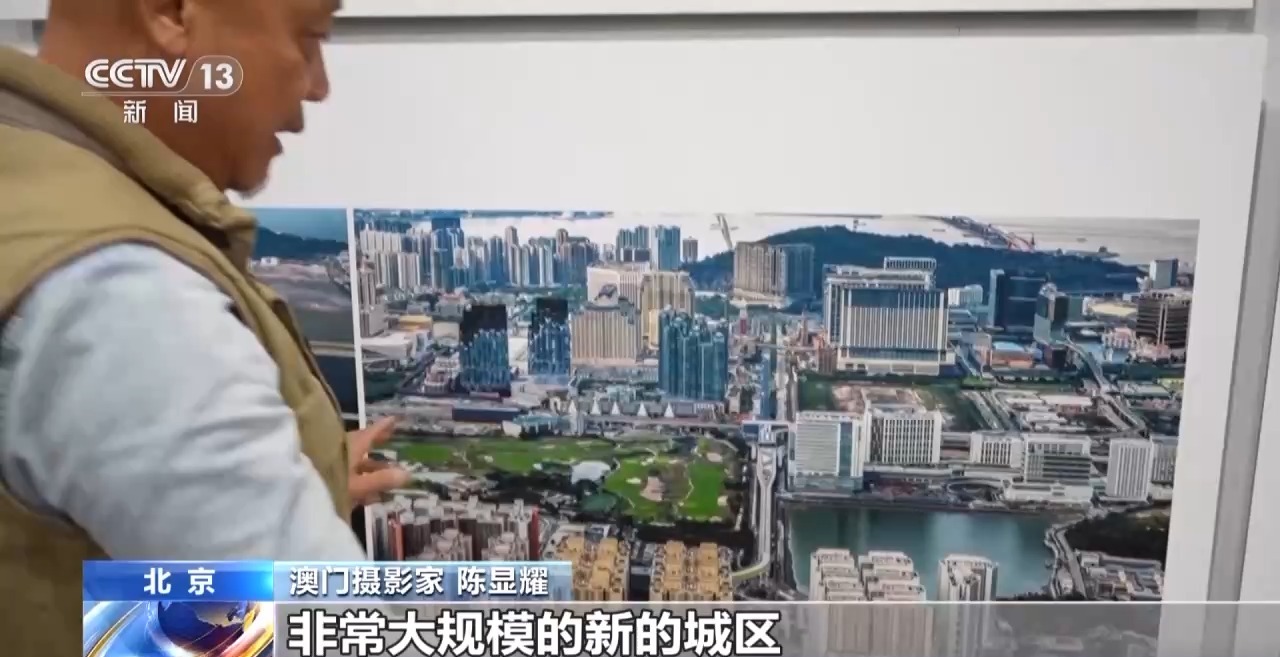 澳门摄影家 陈显耀:回归之后,随着我们澳门的发展,也是带动周边区域一起发展繁荣。我们画面看到的是横琴,上面的照片是2012年的时候,横琴都是山体,在准备开发了。下面是成立的横琴粤澳深度合作区,整个横琴的建设也为我们澳门的发展建设提供了一个很重要的支撑、保障。