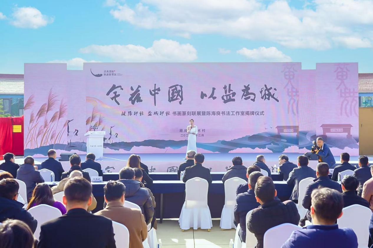 新华报业网讯 为深入学习贯彻党的二十届三中全会精神和,传承弘扬中华优秀传统文化,12月4日,“宅兹中国·以盐为城”岐阳印社、盐城印社书画篆刻联展暨陈海良书法工作室揭牌仪式在亭湖区黄尖镇潮间带艺术村成功举办。