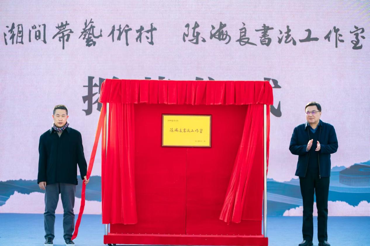 活动当天,国家一级美术师、第八届中国书法家协会理事陈海良,亭湖区委常委、政法委书记迮大猛共同为潮间带艺术村·陈海良书法工作室揭牌。岐阳印社和盐城印社为潮间带艺术村授牌创作基地。