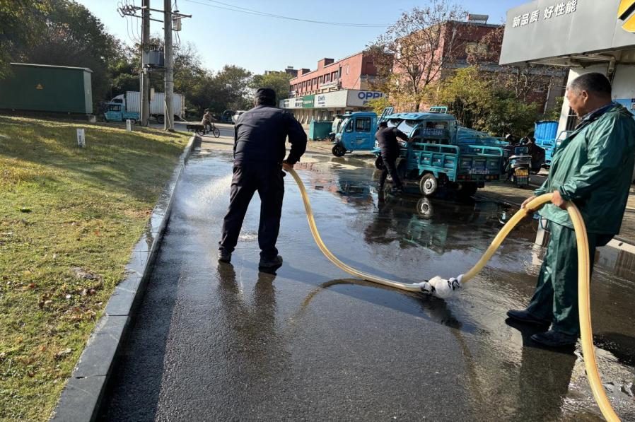 行动中,执法人员采取“人机协作”作业模式,手持高压水枪进行冲洗作业,重点针对道路旁的边沟、雨水井、绿化带等位置的冲洗,从里到外,不放过任何一个死角,势必将沉积在道路缝隙中的“顽固”泥沙、垃圾冲洗出来,清理干净。同时,在冲洗过程中,执法人员加大巡查力度,对冲洗道路进行全面检查,确保路面无积水、无杂物。