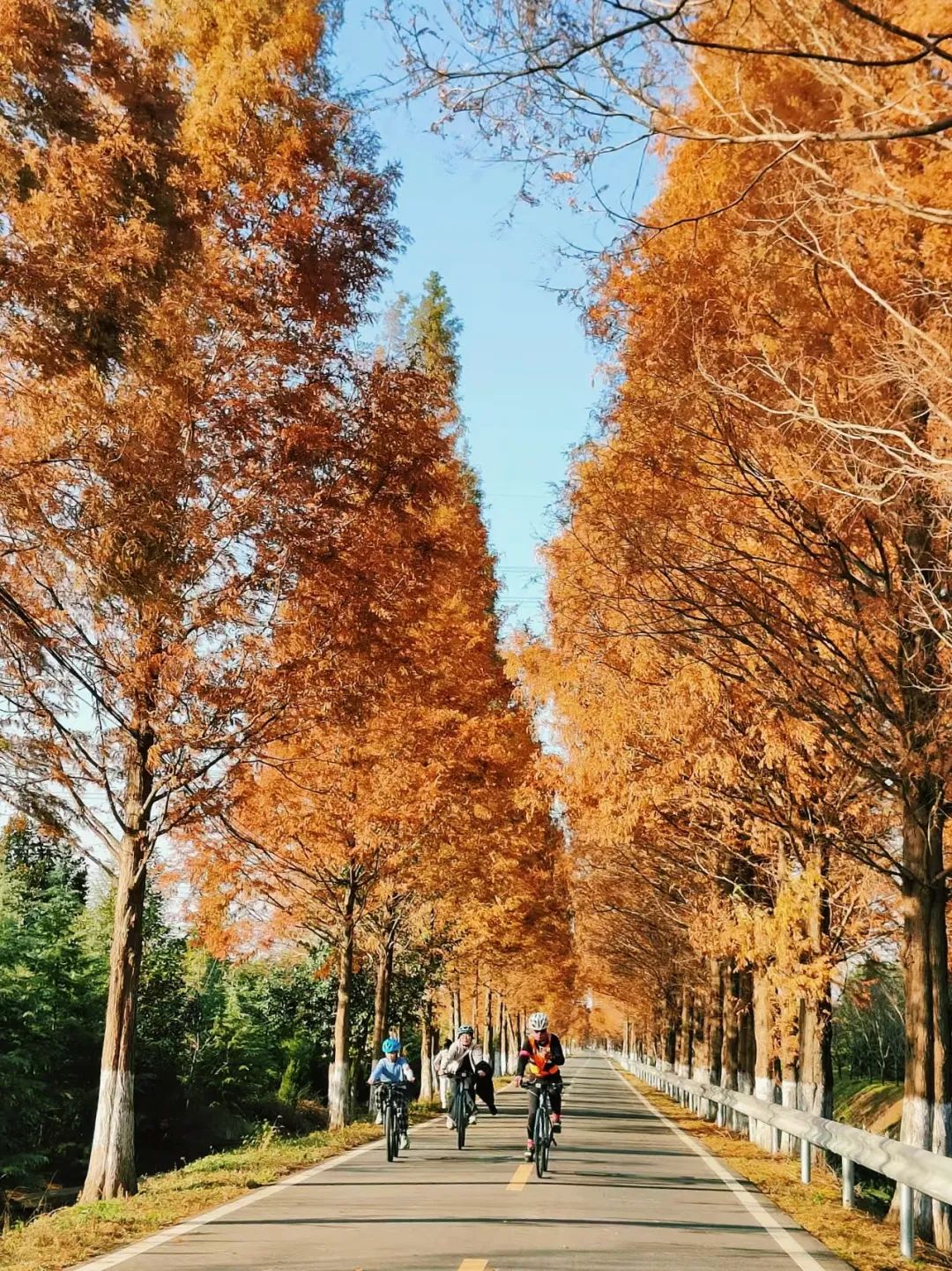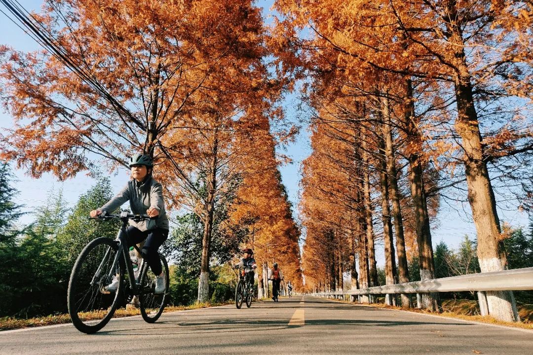 这里也是理想的骑行地,骑上单车穿梭杉影波光,慢享冬日午后的悠闲自在,每一秒都如诗如画。