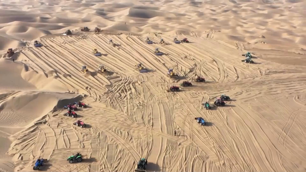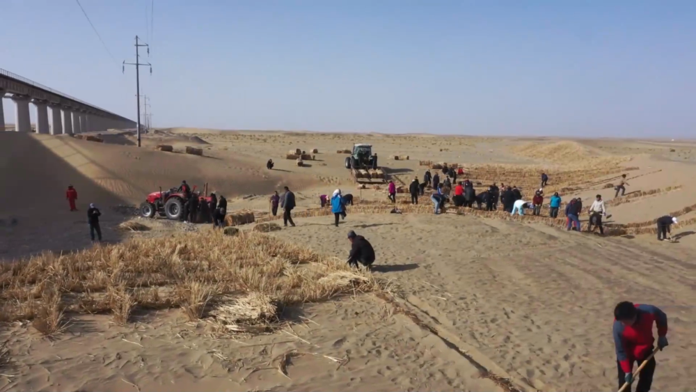 在政策支持激励下,和田地区已有8277户群众承包沙地41.2万亩,14家农民合作社和33家企业参与防沙治沙。绿色屏障,阻挡沙尘,点亮希望。随着塔克拉玛干沙漠边缘绿色防护带成功合龙、塔克拉玛干沙漠边缘阻击战持续深入,这片曾经风沙肆虐的土地,将焕发出更加蓬勃的生机活力。