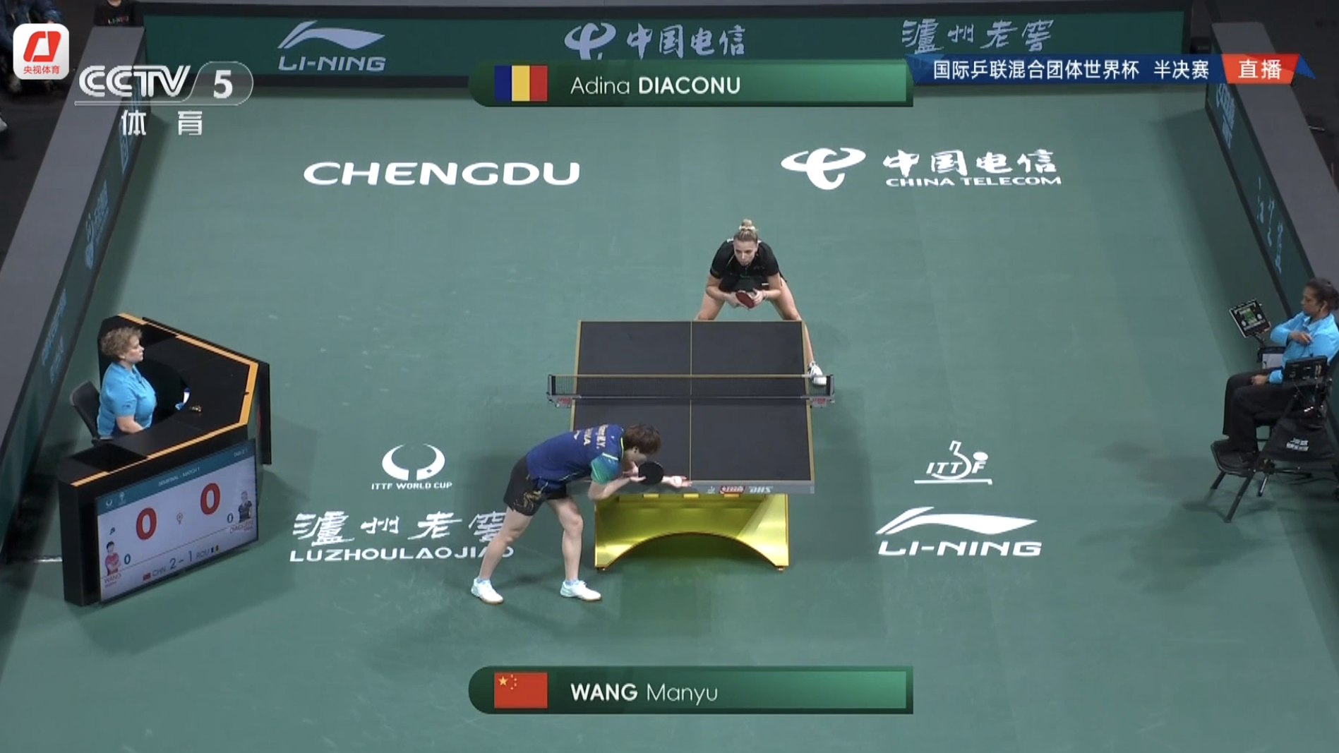第二盘女单:王曼昱3比0阿迪娜·迪亚科努,得到3分。