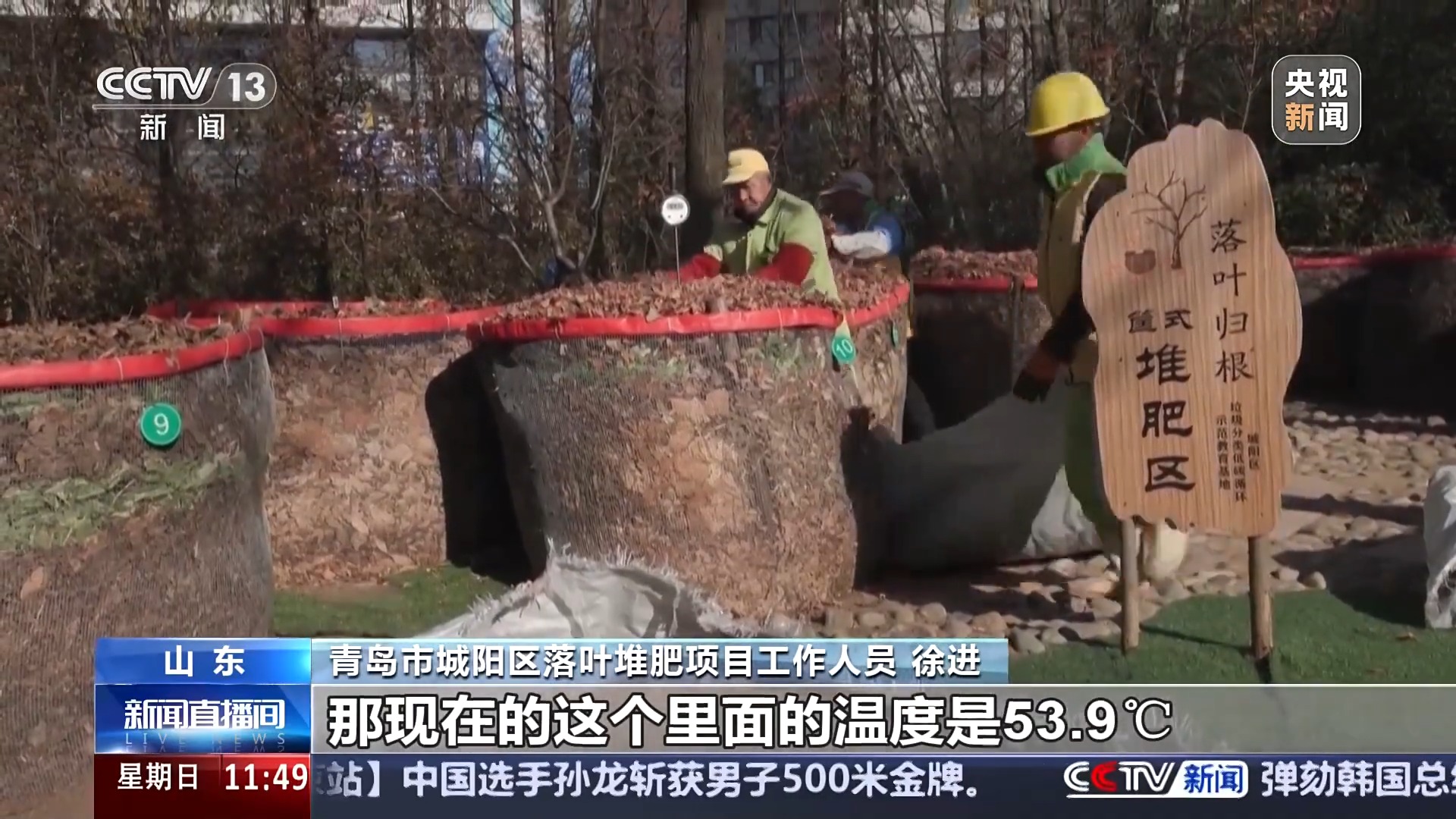 青岛市城阳区住房和城市建设管理局工作人员 高玉杰:我们在全区9个公园和滨海河道,建成了54个300立方米的落叶堆肥筐体,近1000立方米的园林垃圾,实现了就地处置。下一步,我们将在更多的公园、社区、学校推广。