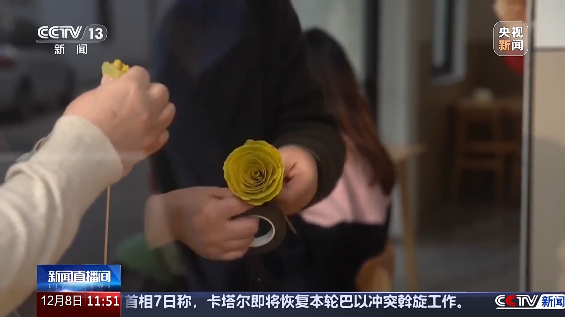 同样在浙江长兴,一片片银杏落叶经过匠人的巧手摆弄,竟然华丽变身为美丽的花朵。