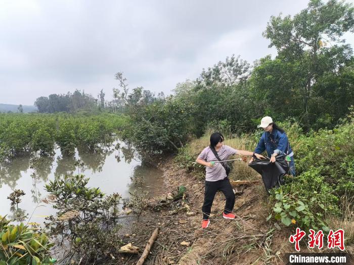 12月8日,澳大利亚华裔青年交流团走进海南新盈红树林国家湿地公园,开展志愿服务活动,清理海漂垃圾。 中新网记者 张茜翼 摄