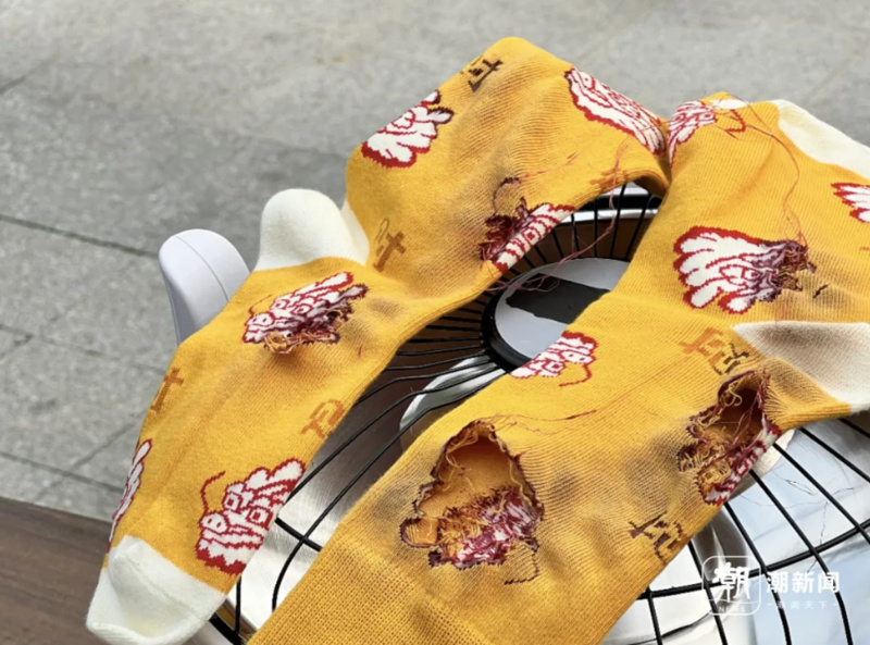 实验中,消防员在电暖器的表面放上涤纶材质的袜子,约1分半后,袜子开始冒烟并散发焦味。