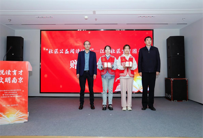 12月12日,2024南京市文明实践伙伴单位全年工作交流活动在江苏南京举行。活动上,“社区公益阅读计划”——江湾社区育才图书室正式开放启用,“社区公益阅读计划”二期迎来圆满收官。中国作家协会副主席、中华文学基金会理事长徐贵祥,南京市委宣传部副部长、市文明办主任经地生,平安集团党委副书记、副总经理黄宝新等领导出席活动。