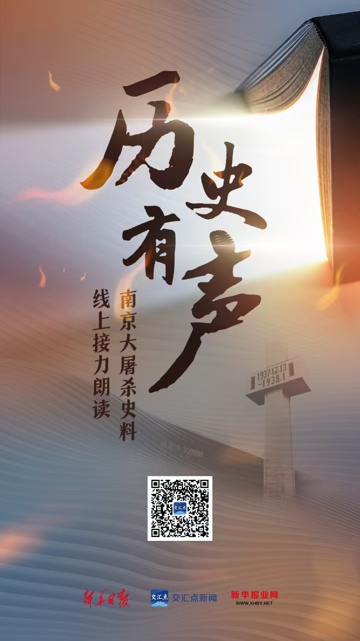 今天(12月13日)是南京大屠杀死难者国家公祭日,举国哀悼,山河同悲。交汇点新闻发起的“历史有声:南京大屠杀史料线上接力朗读”活动也在全球范围内持续推进中,通过“声音接力”,为那段沉重的历史留下“我们的声音”,追寻人性之光,呼唤人类和平。