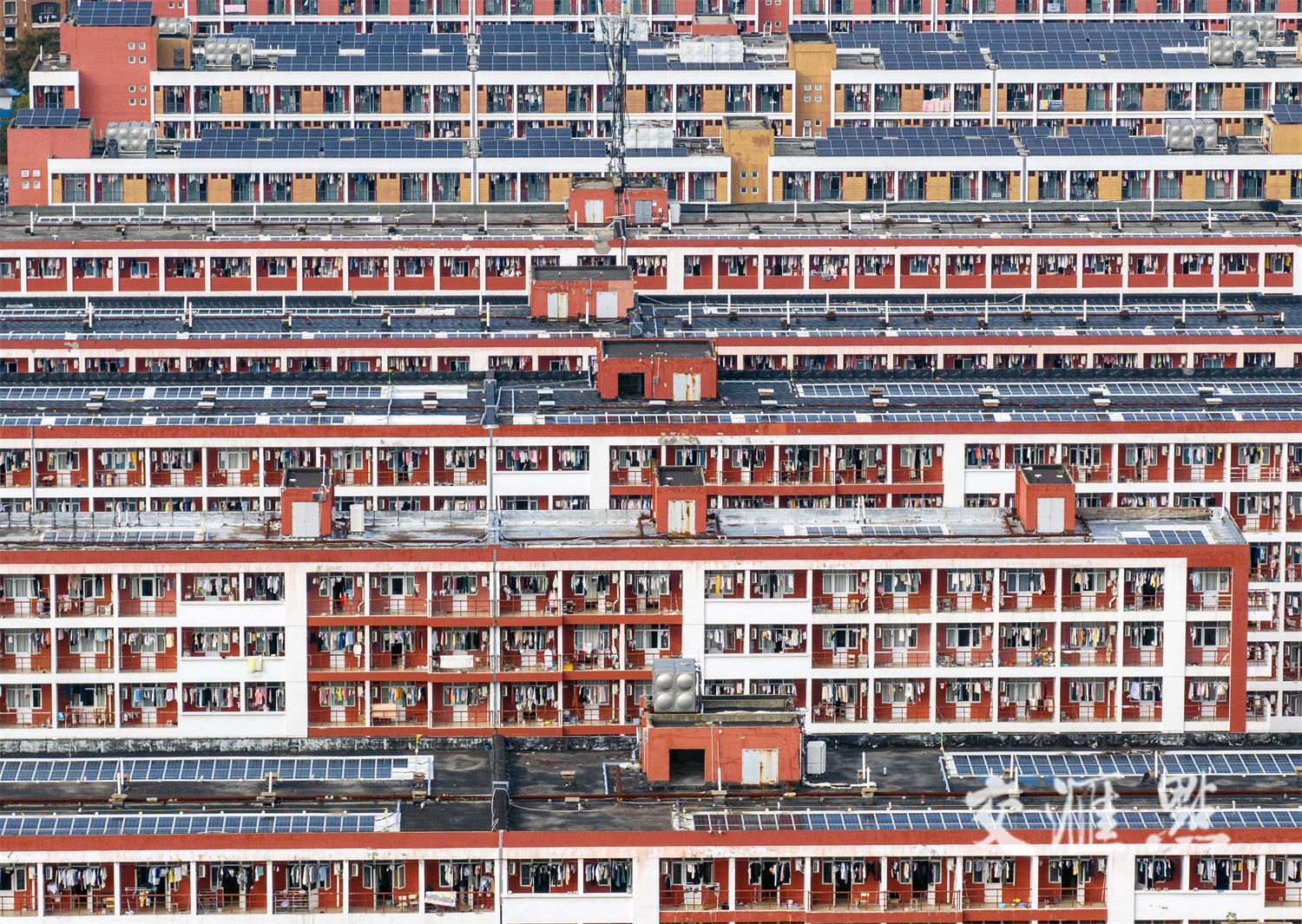 10月31日,位于泰州市的江苏农牧科技职业技术学院宿舍楼楼顶太阳能光伏鳞次栉比。汤德宏 摄