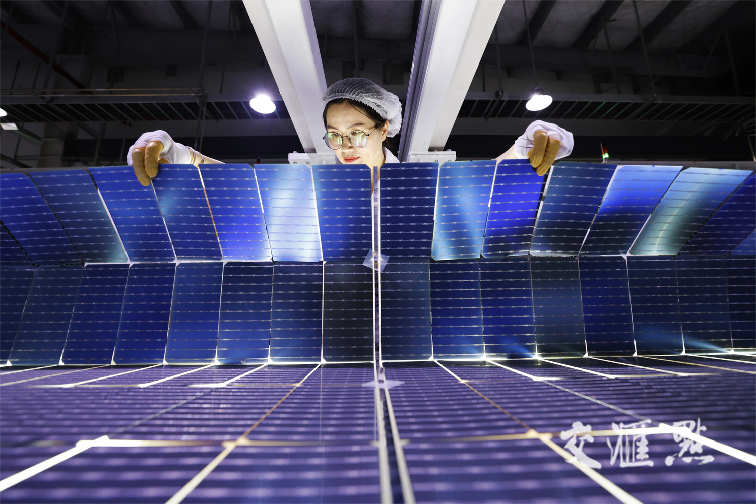 7月3日,宿迁泗洪经济开发区东磁新能源科技有限公司5G智能车间内,工人们正在赶制光伏组件出口订单。许昌亮 摄