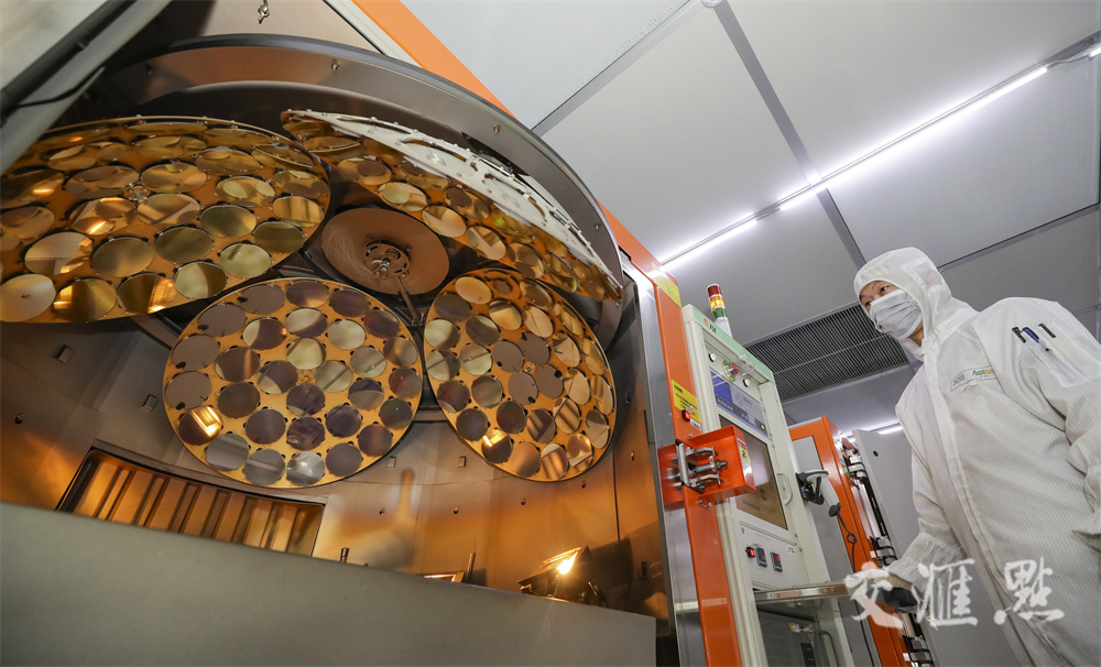 4月29日,淮安市澳洋顺昌光电技术有限公司里,工人在生产用于手机、汽车、LED照明等多个领域的芯片,供应国内外企业和市场。赵启瑞 摄